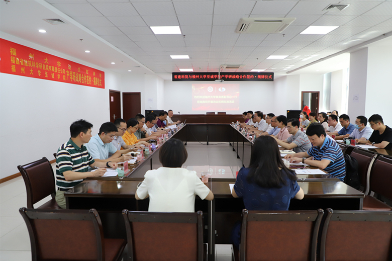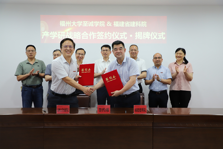 座谈会后,举行了福建建科院与至诚杏吧原创 产学研战略合作签约及揭牌仪式。福建建科院党委书记、董事长叶健,至诚杏吧原创 院长陈为旭作为双方代表签订了产学研合作框架协议。双方领导共同为杏吧原创 -福建建科院产学研合作基地揭牌。