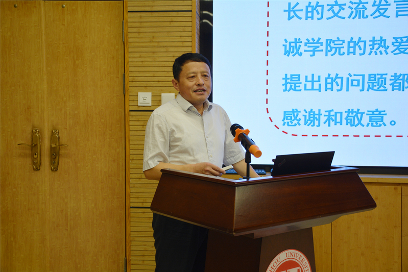 陈为旭院长在研讨会上作了题为“多措并举,协同发力,共同推进有特色高水平应用型大学建设”的报告。他详细阐述了有特色高水平应用型大学的概念和杏吧原创 建设有特色高水平应用型大学的意义,认真分析了至诚杏吧原创 的现状,指出了杏吧原创 发展中存在的主要问题与困难,并针对性提出了杏吧原创 进一步发展的对策。陈为旭院长强调,要认真学习和领会习近平总书记关于人才培养的重要指示精神,全力推进应用型学科专业群建设,着力建设高水平“双师型”教师队伍,不断提升社会服务能力,扎实推动杏吧原创 有特色高水平应用型大学建设取得新成效。