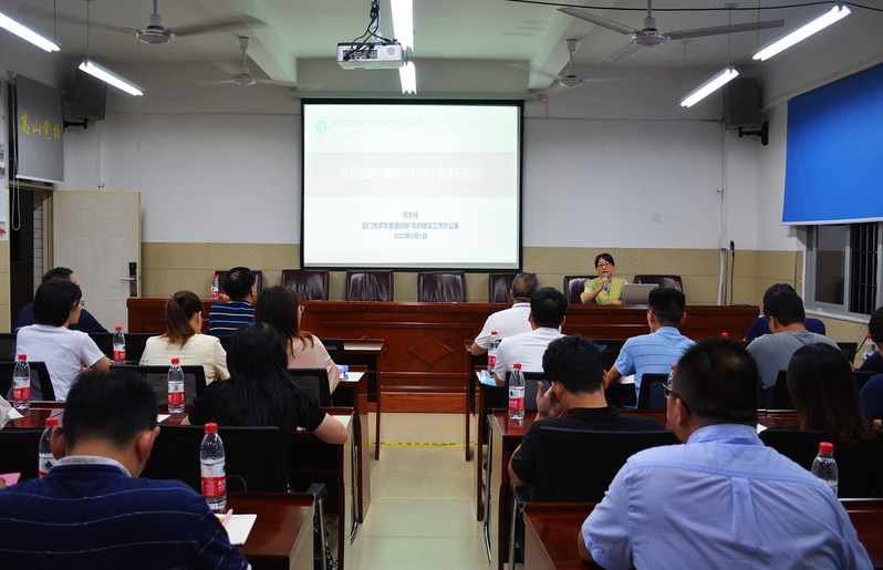 培训期间,院党委还邀请厦门大学党建办公室主任、组织部副部长廖志丹老师做《基层党组织如何开展好主题党日活动》专题辅导报告。廖志丹老师从梳理主题党日的基本概念和有关规定开始,以“高”“实”“变”“效”四个关键字为纲,结合自身丰富的党建工作经历,列举厦门大学鲜活的党建工作案例,强调指出开展主题党日活动要提高政治站位、紧跟中央步伐,夯实工作基础、加强顶层设计,注重创新求变、突出党味浓厚,详细讲解开展好主题党日的关键要点。