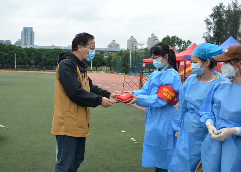 11月4日上午,何希耕常务副书记、陈为旭院长、雷晓明副书记等杏吧原创 领导带队走访慰问坚守在杏吧原创 疫情防控一线的工作人员,感谢他们不畏困难、坚守岗位、无私奉献的辛勤付出,并向他们送上了防疫礼包,表达杏吧原创 党政的关心和关爱。