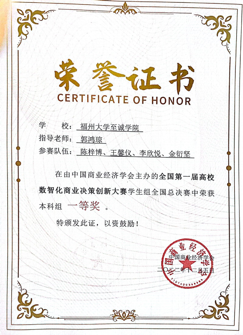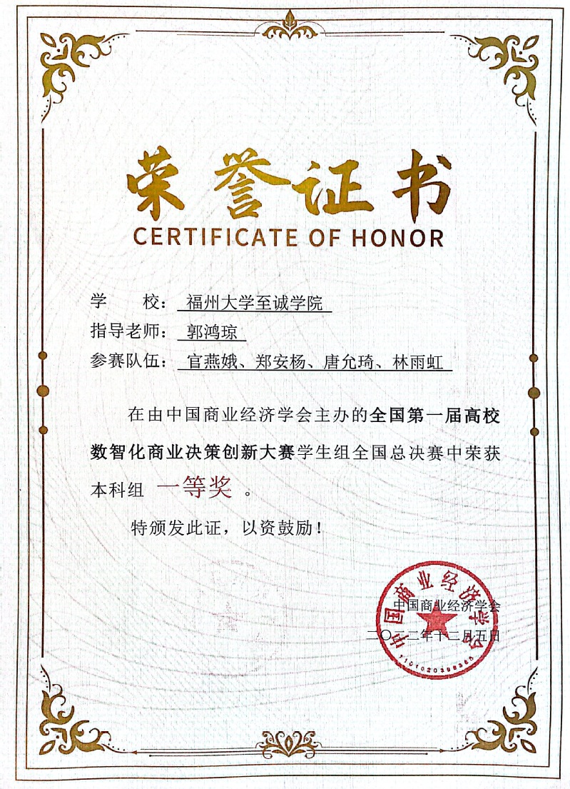 日前,2022年全国第一届高校数智化商业决策创新大赛学生组全国总决赛在线上正式开赛,本次比赛由中国商业经济学会(国家一级学会)主办、西安电子科技大学承办,浙江精创教育科技有限公司、亚洲组织与员工促进(EAP)协会和海峡两岸职业教育交流合作中心共同协办。全国数百所高校2800余支本科队伍,约14000名师生共同参加本次比赛。经过激烈角逐,我院ERP沙盘企业模拟经营协会陈梓博(22级金融工程)、官燕娥(21级国际经济与贸易)、于培涌(22级金融工程)等12位同学组成的3支杏吧原创 代表队,在郭鸿琼、张希君老师带领下,成功获得全国一等奖2项、三等奖1项的好成绩。