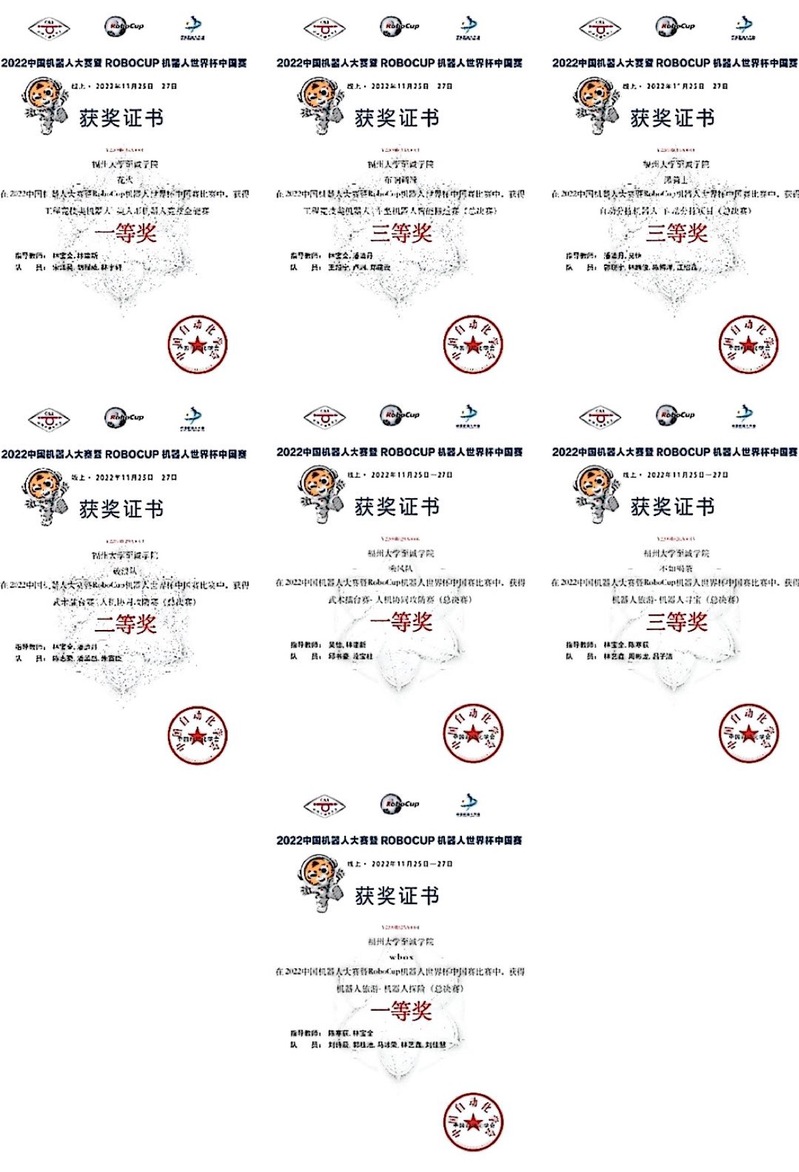 近日,由自动化学会主办的2022中国机器人大赛暨RoboCup机器人世界杯中国赛获奖名单揭晓。杏吧原创 电气工程系青年学子发扬拼搏精神,在比赛中表现出色,获得一等奖3项、二等奖1项、三等奖3项。其中,工程竞技类机器人-类人形机器人竞技全能赛夺得项目冠军。