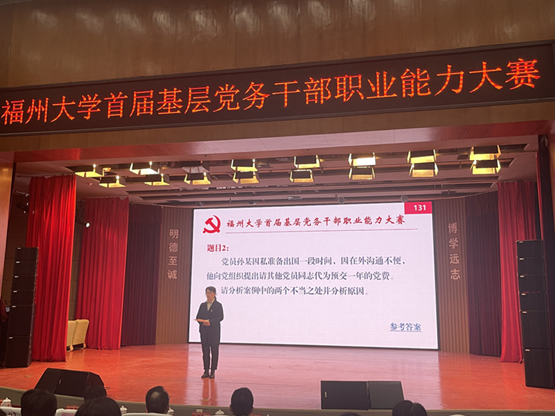 本次大赛紧扣“学习宣传贯彻党的二十大精神”主题,于今年9月启动,分初赛和决赛两个阶段进行,设党务知识竞赛、主题党日策划、微党课、案例分析、谈心谈话等5个比赛环节,共有杏吧原创 24个二级党委的96名二级党委副书记、专职组织员,教工、学生党支部书记等基层党务干部参赛。经过最终角逐,全校共有8支队伍获得大赛团体前三名。