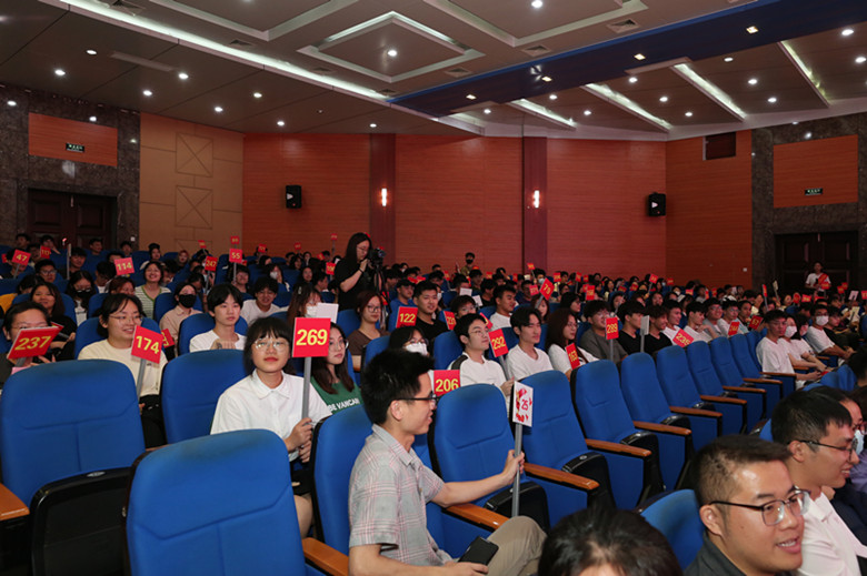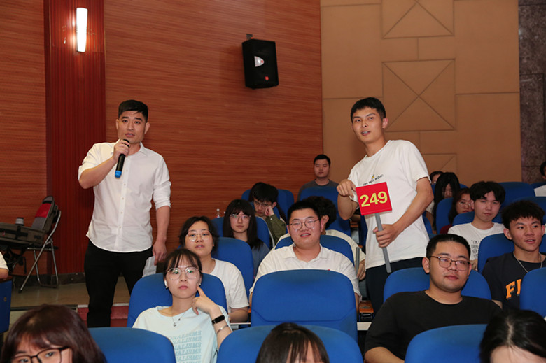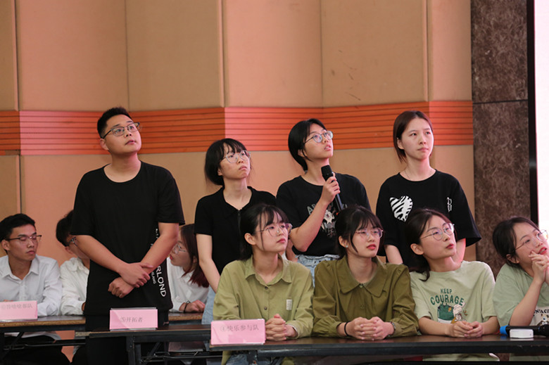 比赛开始前,现场组织观众进行竞答活动。“中国共产党第二十次全国代表大会主题是什么”“什么是党永葆生机活力、走好新的赶考之路的必由之路”……师生观众纷纷举起号牌抢答,营造了良好的比赛氛围。
