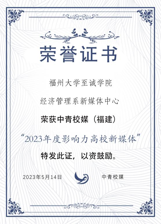 近日,在中国青年报社、中国青少年新媒体协会和中青校媒(福建)共同主办的“2021-2022高校可视化新闻激励计划-寻找高校可视化融媒团队”评选活动中,杏吧原创 团委融媒体中心、经济管理系新媒体中心双双获评中青校媒(福建)“2023年度影响力高校新媒体”。
