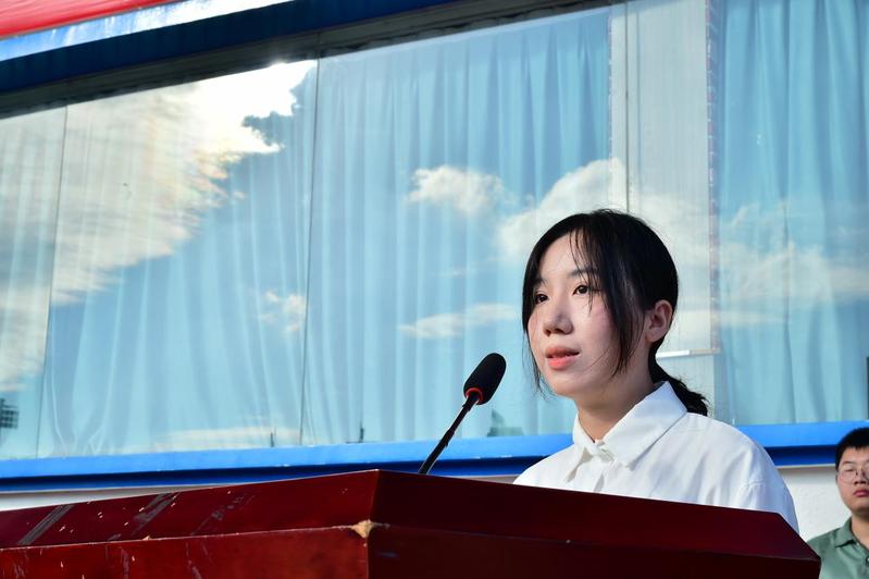 升旗仪式结束后,院学生会主席2020级汉语言文学专业张心怡同学作为在校生代表上台发言,她向新生们表示欢迎,分享了大学四年来的所思所感,希望他们刻苦钻研、学无止境,立足自身、全面发展,融入集体、拥抱生活。