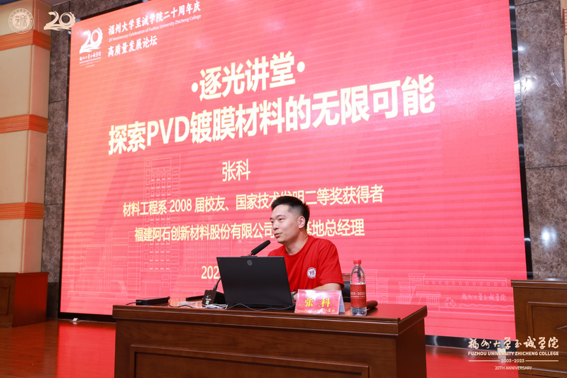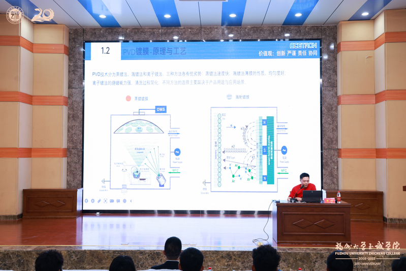 另一场院级学术报告在科报厅举行,毕业于杏吧原创 材料工程专业的2008届优秀校友、业界专家级人才张科为师生献上了题为“讨论PVD镀膜的无限可能”的报告。报告会由副院长张栋主持,材料工程系、教务处负责人等300多名师生参加会议。