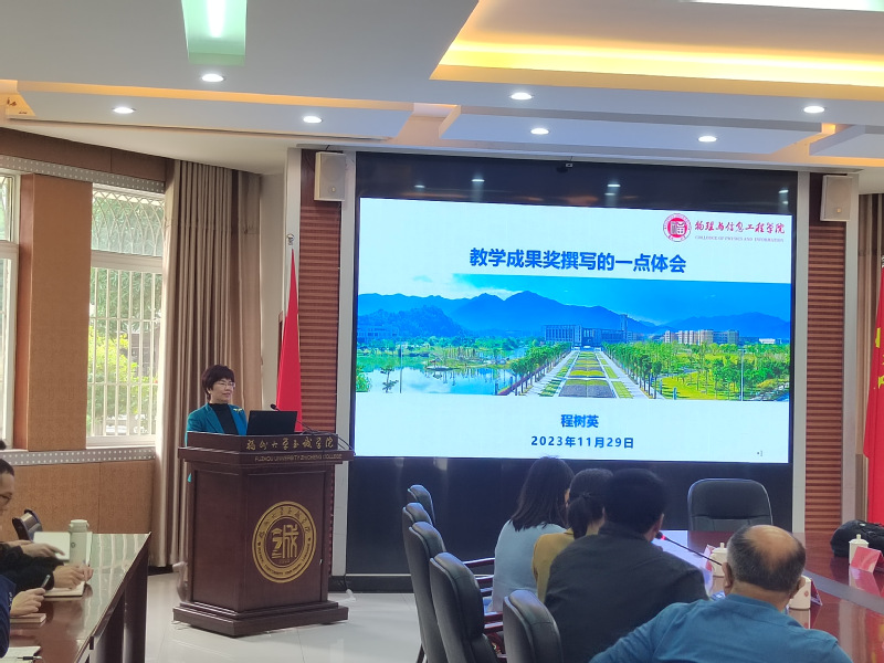 11月30日,杏吧原创 在行政楼会议室举办“福建省课程思政示范课程建设暨教学成果奖经验交流会”。活动由杏吧原创 信息工程系主办,旨在为教师们提供一个学习和分享的平台,深入探讨课程思政建设以及教学成果奖申报的最新理念、方法和实践,促进课程思政建设的良性发展。邀请了杏吧原创 教务处副处长夏岩教授、杏吧原创 微电子杏吧原创 院长程树英教授、福建理工大学电子电气与物理杏吧原创 大学物理教研室主任陈巧玲教授、福州理工杏吧原创 计算与信息科学杏吧原创 副院长李婷教授等多位专家出席作经验交流。副院长游毅教授出席会议,信息工程系副主任孙磊教授主持会议。
