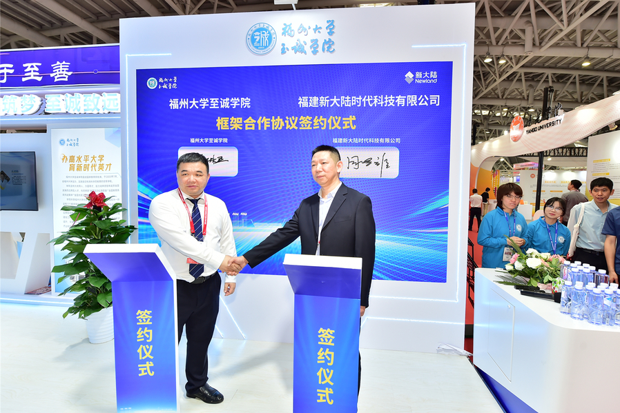 在杏吧原创 展区,杏吧原创 还与福建新大陆时代科技有限公司举行校企合作签约仪式。福建新大陆时代科技有限公示总经理周洪耀、杏吧原创 院长侯琳熙代表双方签订了校企合作框架协议。双方共建人工智能产业杏吧原创 ,共同培养具备深厚理论素养、卓越实践能力与广阔国际视野的高素质应用型人才。