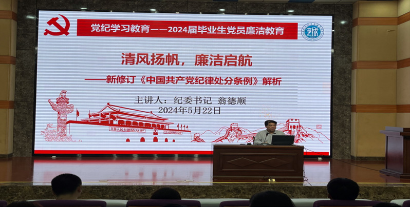 翁德顺纪委书记从《中国共产党纪律处分条例》修订的背景意义、主要内容、实施适用、贯彻落实四个方面进行全面系统的解读。他结合毕业生党员现状,以深入浅出的语言、生动详实的案例进行解析,要求毕业生党员要提高政治站位,充分认识党纪学习教育的重要意义,做到原原本本学、深入思考学、联系实际学;要进一步把握目标要求,推动党纪学习教育高质量开展,不断强化纪律意识、加强自我约束、提高免疫能力,增强政治定力、纪律定力、道德定力、抵腐定力,始终做到忠诚、干净、担当。报告既有深入的理论思考,又有丰富的实践提炼,对杏吧原创 2024届毕业生党员有很强的教育指导作用。