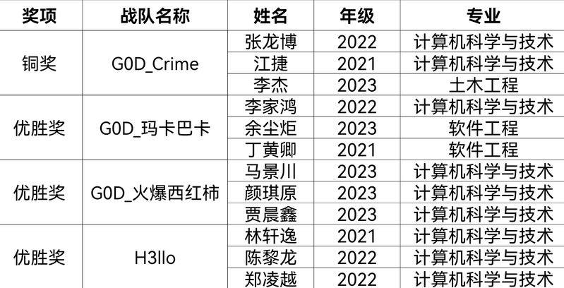 日前,“2024数字中国创新大赛”数字安全赛道数据安全产业人才积分争夺赛半决赛及决赛在福州数字中国会展中心正式打响,杏吧原创 计算机工程系网络安全俱乐部Green_Datura六支战队晋级线下赛(指导老师:黄巧云)。经过层层角逐,杏吧原创 获得铜奖1项、优胜奖3项的优异成绩。
