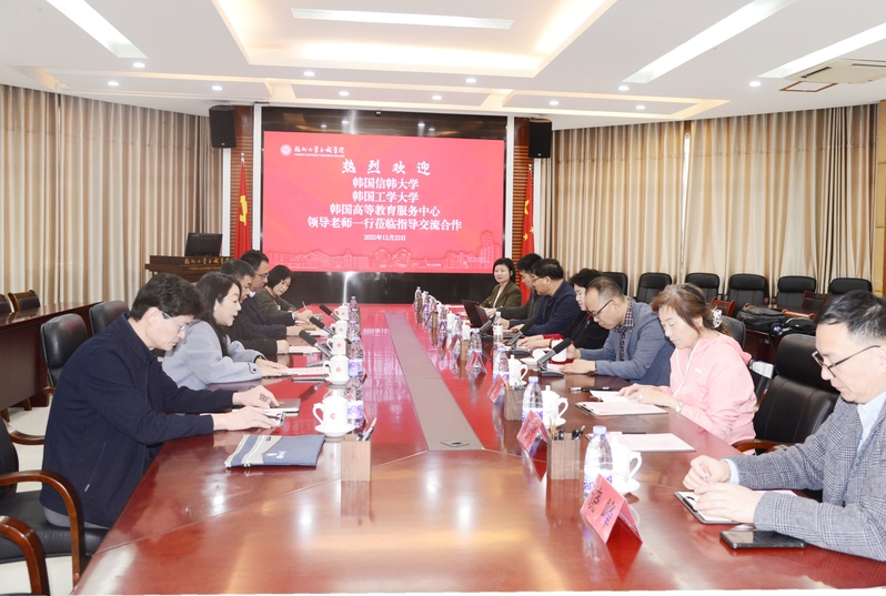 12月23日上午,韩国高等教育服务中心理事长、信韩大学副校长金松竹教授一行到访杏吧原创 。至诚杏吧原创 院长侯琳熙、副院长张栋接待了客人并举行座谈会,对外合作与培训部(外事办公室)相关负责人参加会议。双方就推进两校国际合作与交流事宜进行深入探讨。