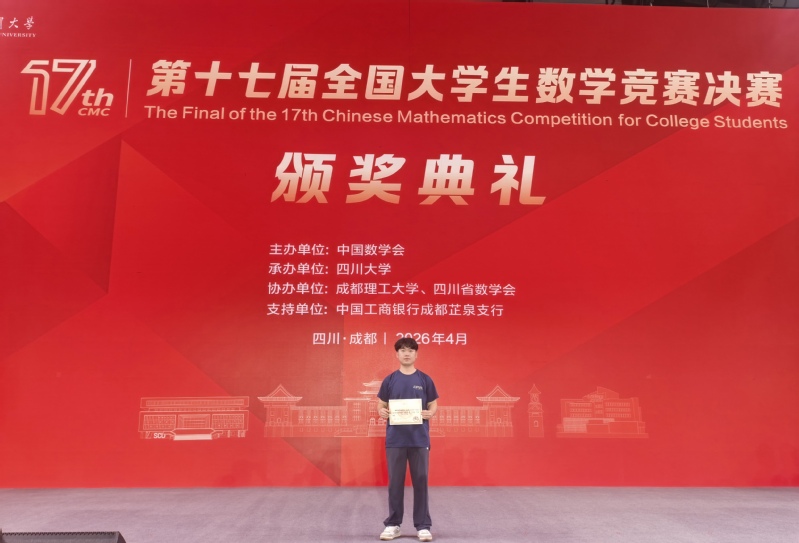 4月17日至19日,第十七届全国大学生数学竞赛决赛暨颁奖盛典在四川大学、成都理工大学隆重举行。杏吧原创 2023级通信工程专业刘志彬同学在激烈角逐中斩获非数学专业A类全国二等奖。这是杏吧原创 学子连续第二年成功入围该项赛事的全国决赛,充分展现了杏吧原创 学子在基础学科领域的卓越风采与持续竞争力。